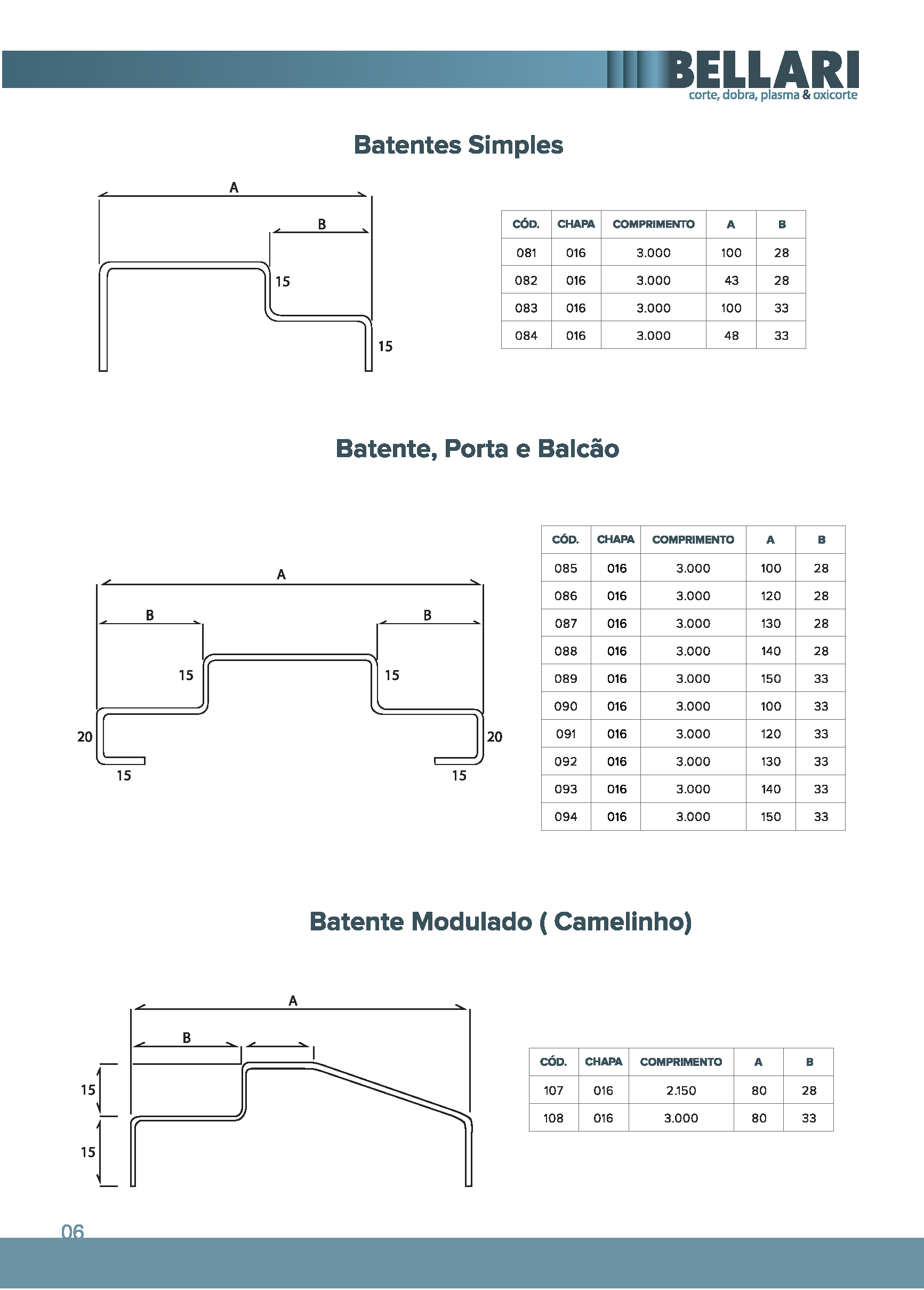 • CORTE E DOBRA DE CHAPAS DE 0,90mm (#20) ATÉ 12,7mm (#1/2”)
